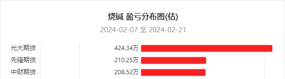 盈亏剖析:数据显示,一周内光大期货、先锋期货、中财期货在烧碱上盈利居前,三机构分别盈利424.34万元,210.25万元,208.52万元。